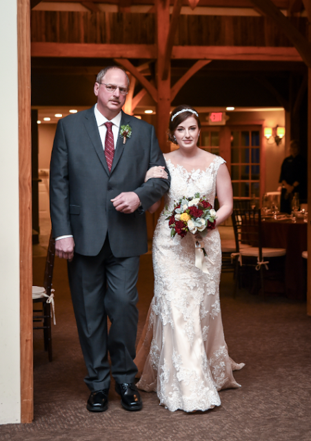 Anyway, as you can imagine, I was so excited when Jordyn asked me to capture her wedding day... In February, with snow on the ground, at a beautiful venue, and guys-- IT SNOWED!! It was perfect and a New England photographer's winter wedding dream! Jordyn looked absolutely stunning in her lace covered dress with champagne underlay and fur shawl. She chose a deep red color that looked gorgeous on each girl and paired it with cute little snow boots and blanket scarves. The boys wore handsome dark navy suits and ties to match the girls with sweet little pinecone boutonnieres. Inside, the decor matched her winter theme perfectly with the little pinecones and white flowers throughout her centerpieces. Wait...... did I mention that it snowed?! Yes, yes I did. Well, how do you have a more perfect winter wedding than that?! We had so much fun taking pictures underneath the floodlight that illuminated all the tiny flakes falling around us. It made these two look like they were straight out of a romance movie. You guys were awesome!!